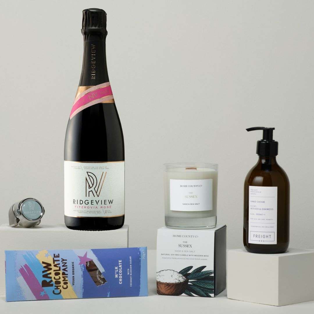 Unwind in style with our Relaxation Gift Set, combining the elegance of Ridgeview’s Fitzrovia Rosé NV with a selection of soothing accompaniments. This delightful combination is the ticket to pure relaxation and indulgence.